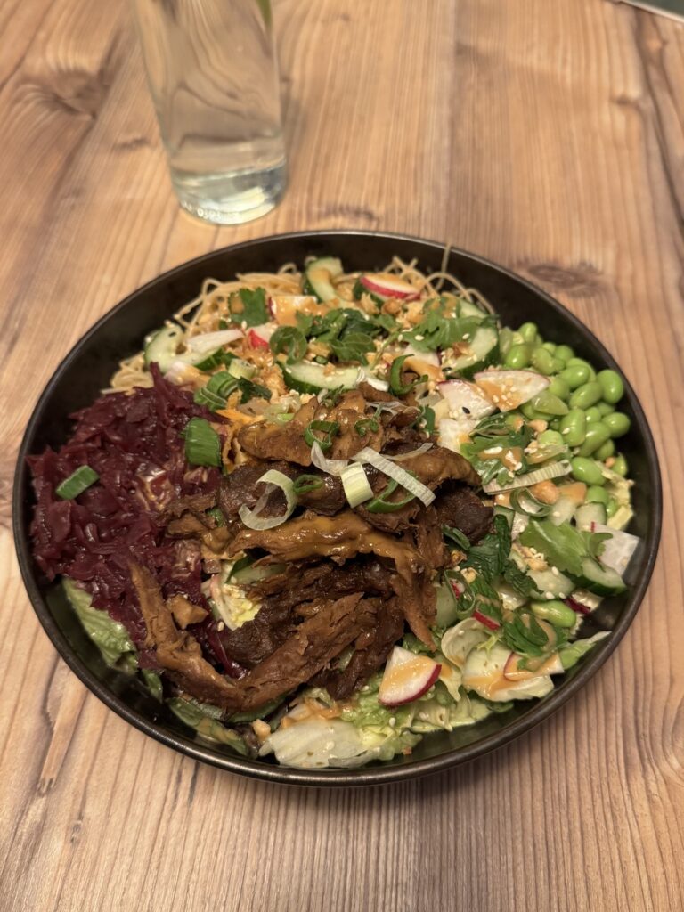 Essenstechnisch gab es bei uns den Beyond Meat Burger, die Bowl mit planted.Ente und die vegane Glasnudel Bowl. Alle Gerichte waren nicht nur optisch ein Highlight, sondern auch geschmacklich richtig stark: würzig, frisch, ausgewogen und absolut sättigend. Gerade die veganen Optionen zeigen, wie viel Liebe und Kreativität in der Küche steckt – hier wird pflanzlich nicht einfach „weggelassen“, sondern bewusst neu gedacht.